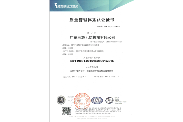ISO質(zhì)量管理體系證書